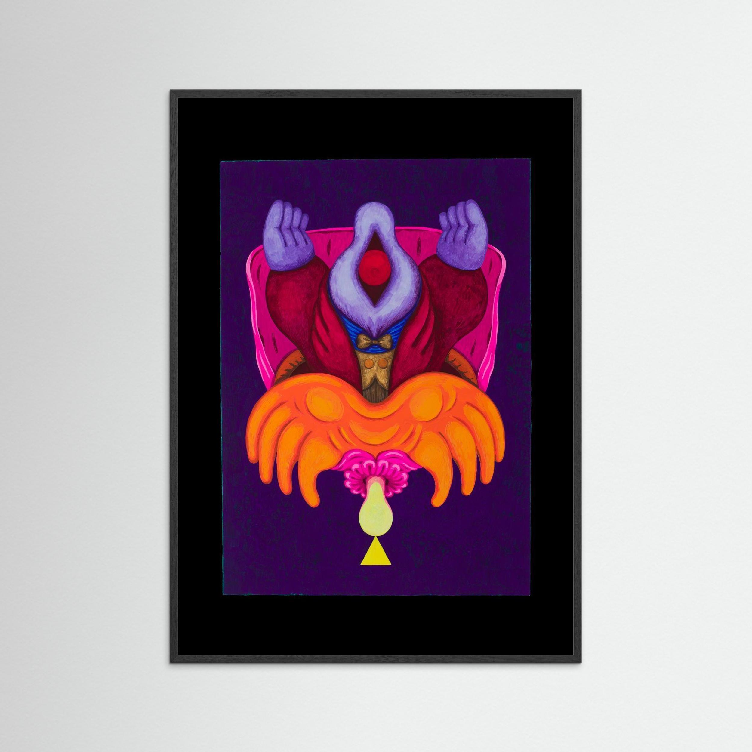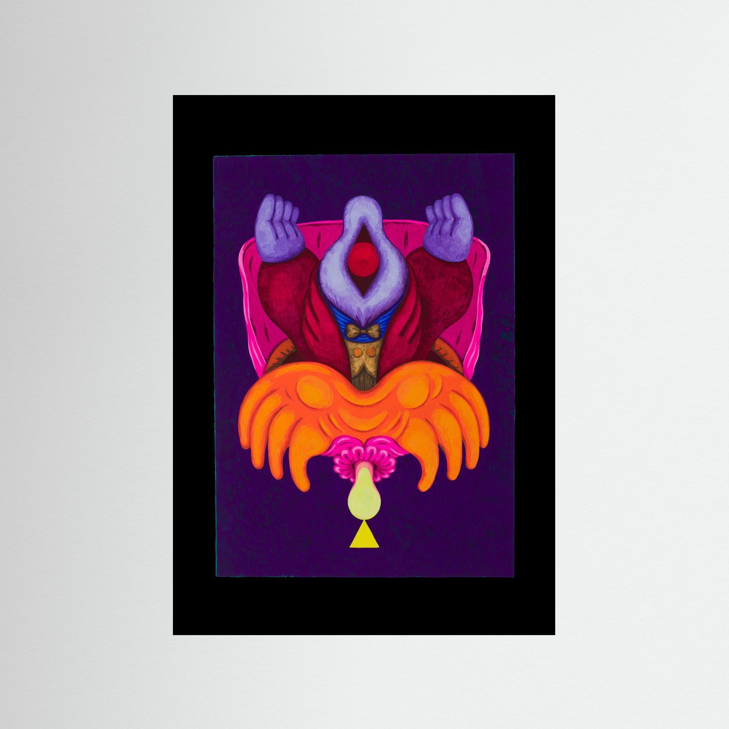 A reversible fine art print from Fanny Senocq’s UpsideDown collection. Horror Horace & St Sara juxtaposes corruption and purification, shadow and redemption. The same gouache composition reveals two completely different visual narratives when rotated 180° – a striking piece with strong tarot-inspired symbolism.