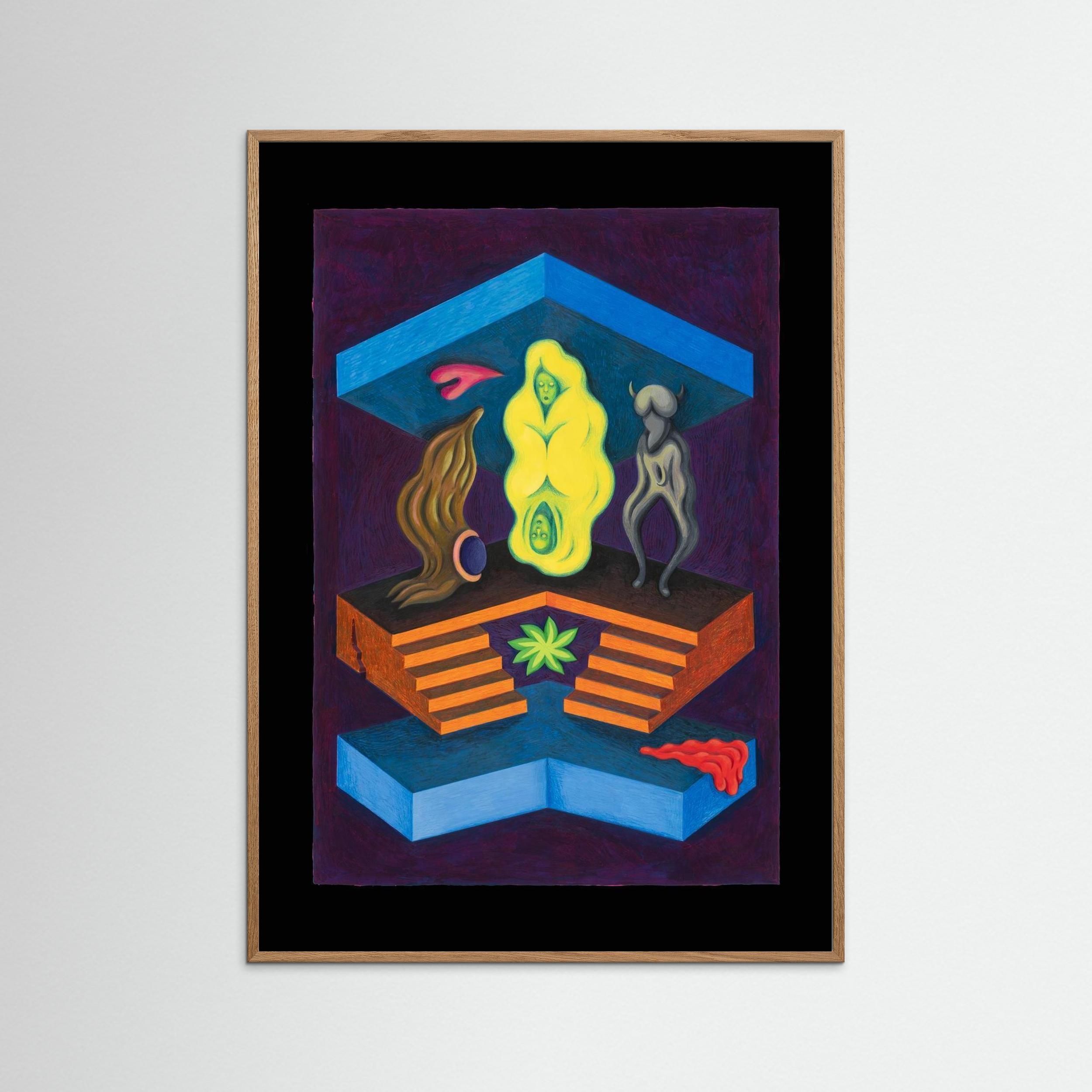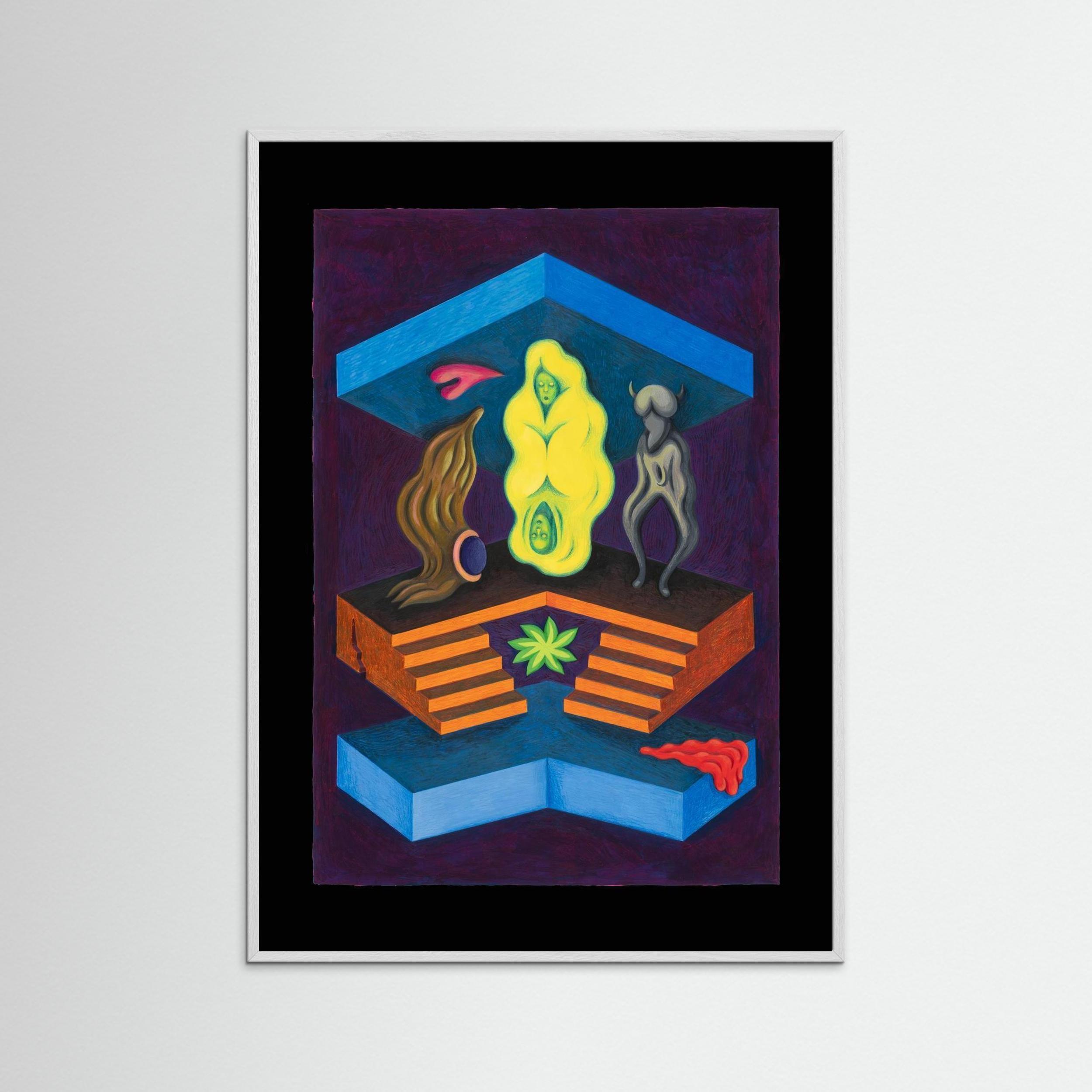 A reversible fine art print from Fanny Senocq’s UpsideDown collection – 22 original gouache paintings where every artwork transforms completely when rotated 180°. Cypher & In the In-Between explores identity, ambiguity and the space between meaning through abstract surrealist imagery. Two entirely different visual narratives are hidden within the same composition.