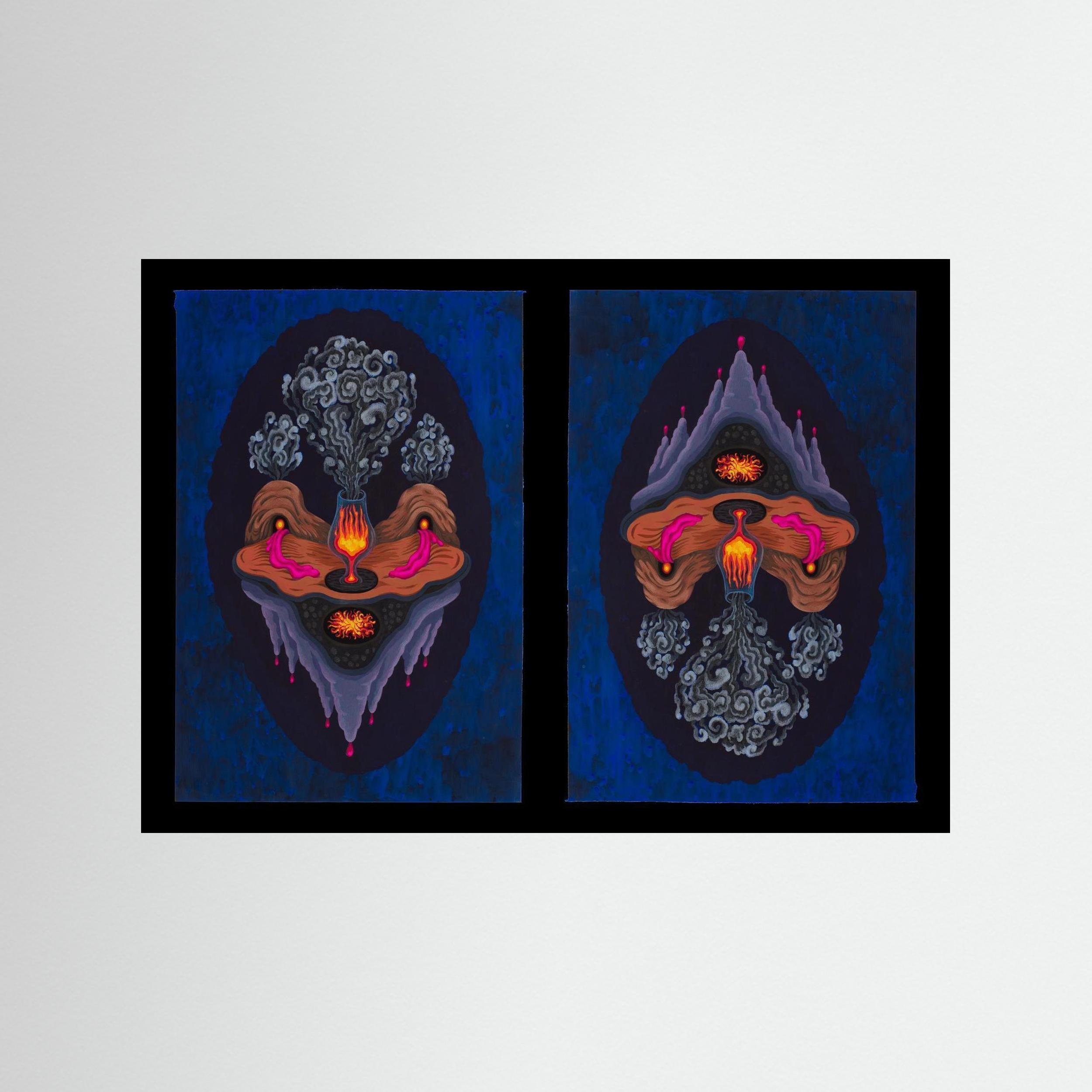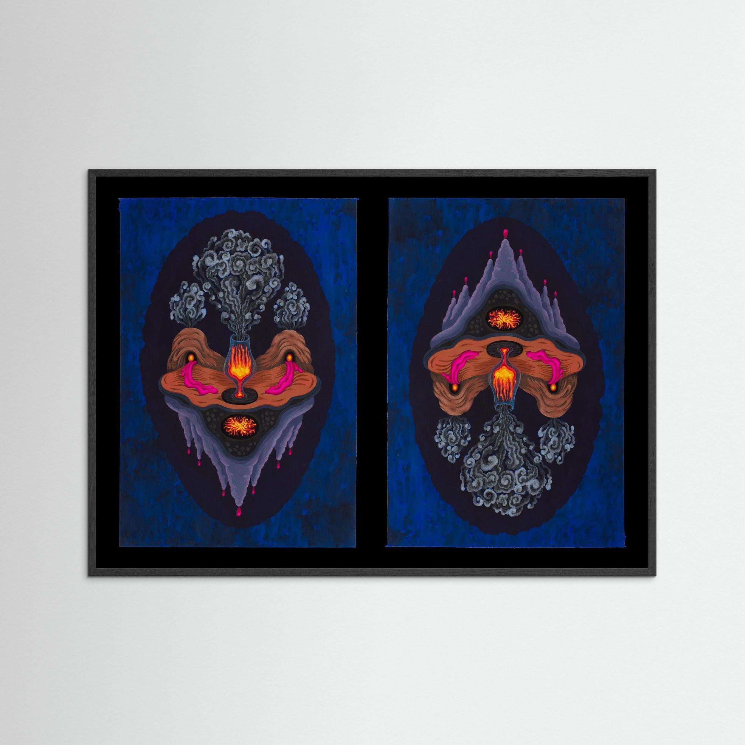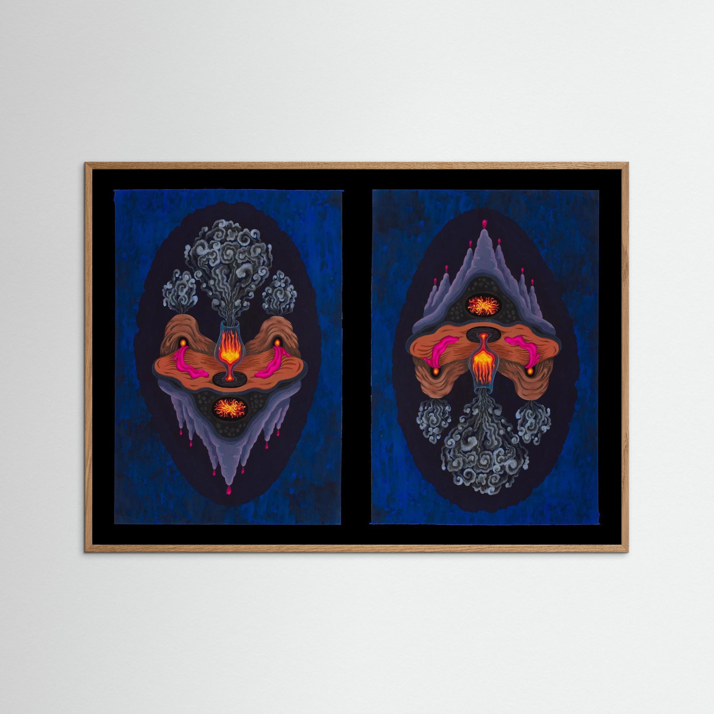 reversible art print, dual orientation artwork, surrealist wall art, gouache art print, UpsideDown Fanny Senocq, dual-orientation print, invertible art print, mythical art print, wall decor Europe, ancient symbolism art