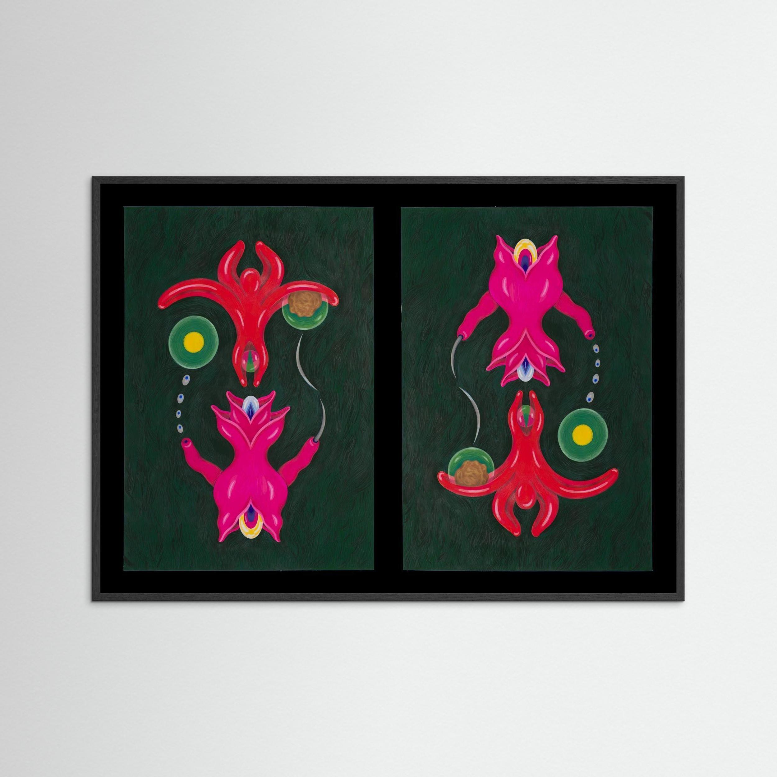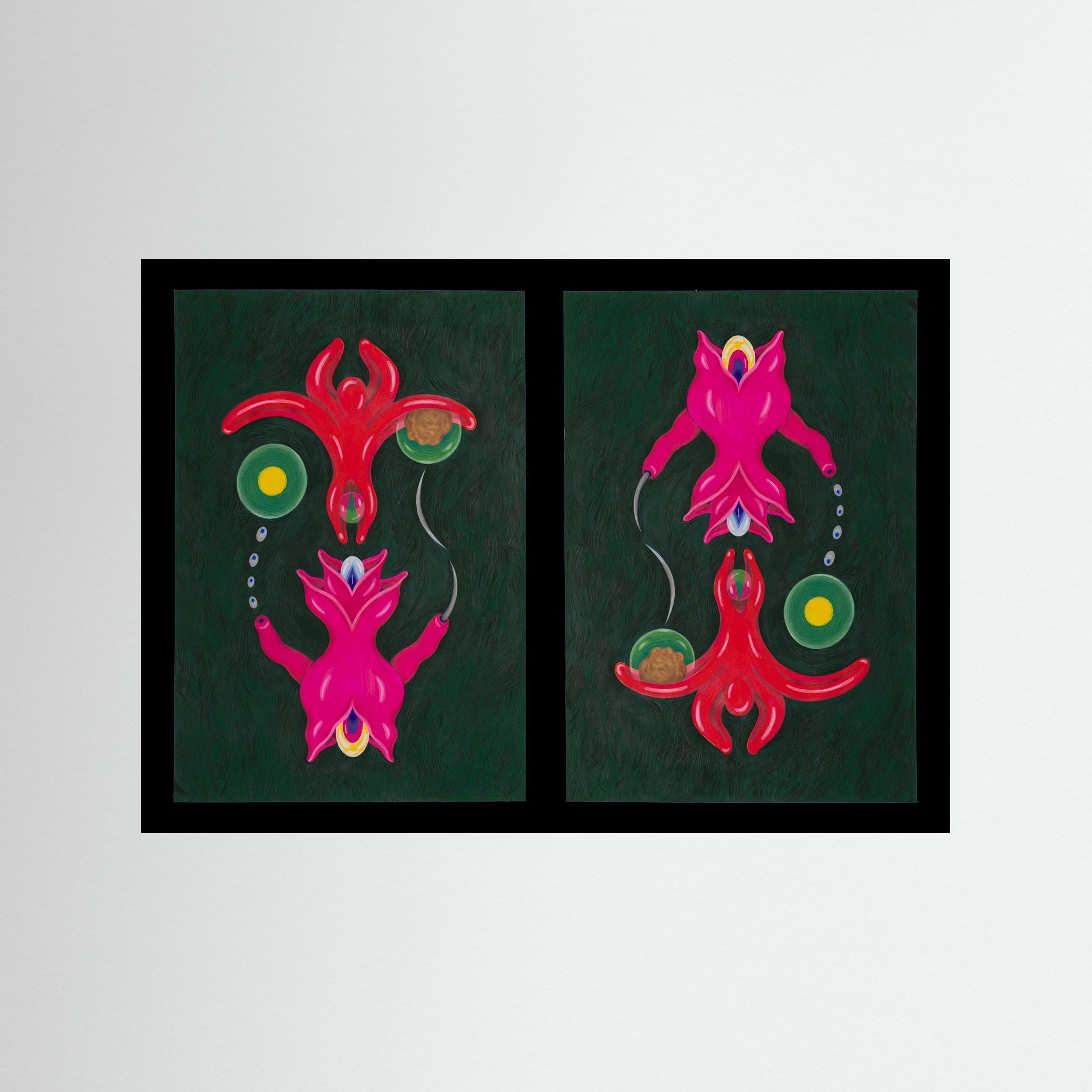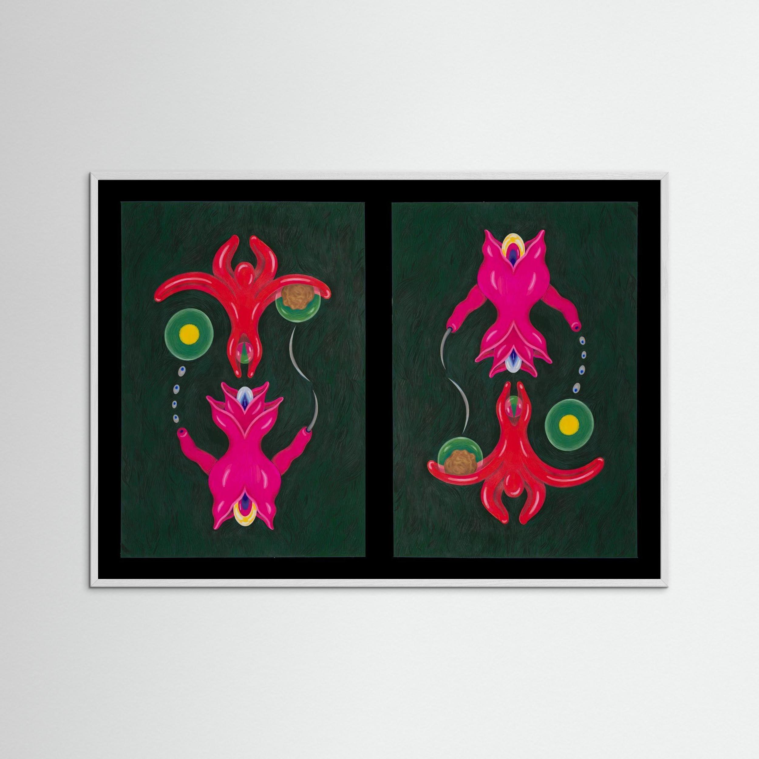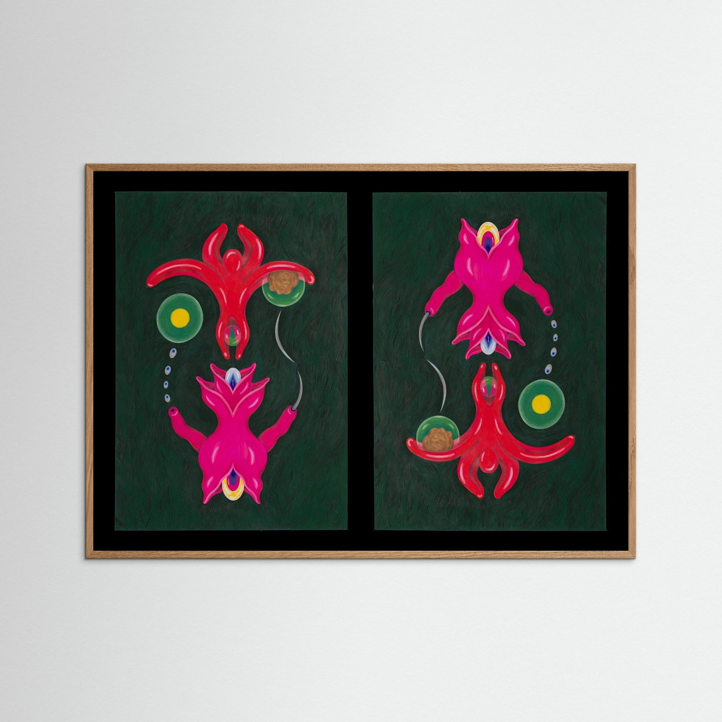 A reversible fine art print from Fanny Senocq’s UpsideDown collection. Lifting or Lowering & Lock and Pock examines the fine line between elevation and suppression, gentle persuasion and hidden coercion. A thought-provoking dual-orientation gouache artwork that shifts meaning entirely when turned upside down.