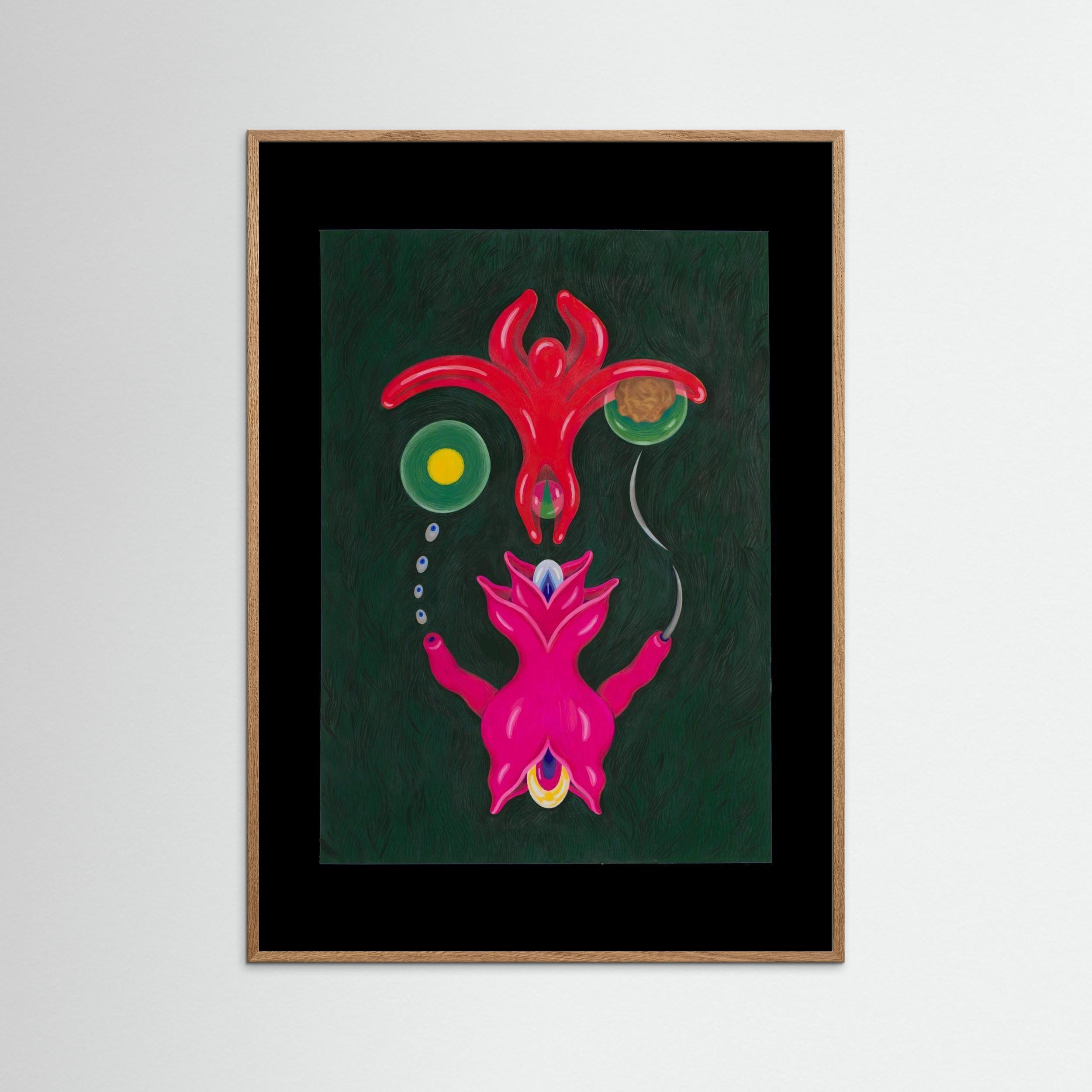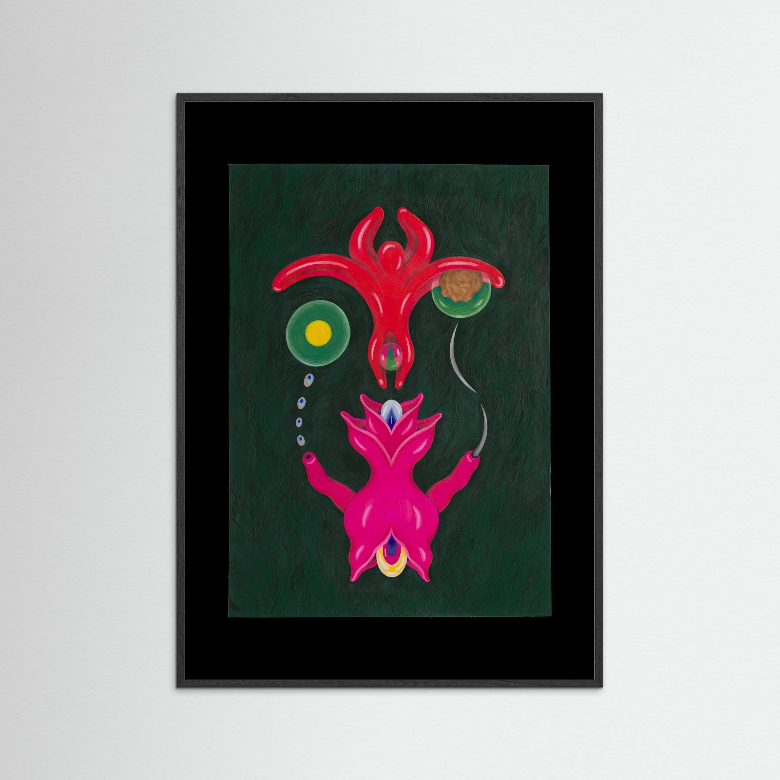 A reversible fine art print from Fanny Senocq’s UpsideDown collection. Lifting or Lowering & Lock and Pock examines the fine line between elevation and suppression, gentle persuasion and hidden coercion. A thought-provoking dual-orientation gouache artwork that shifts meaning entirely when turned upside down.