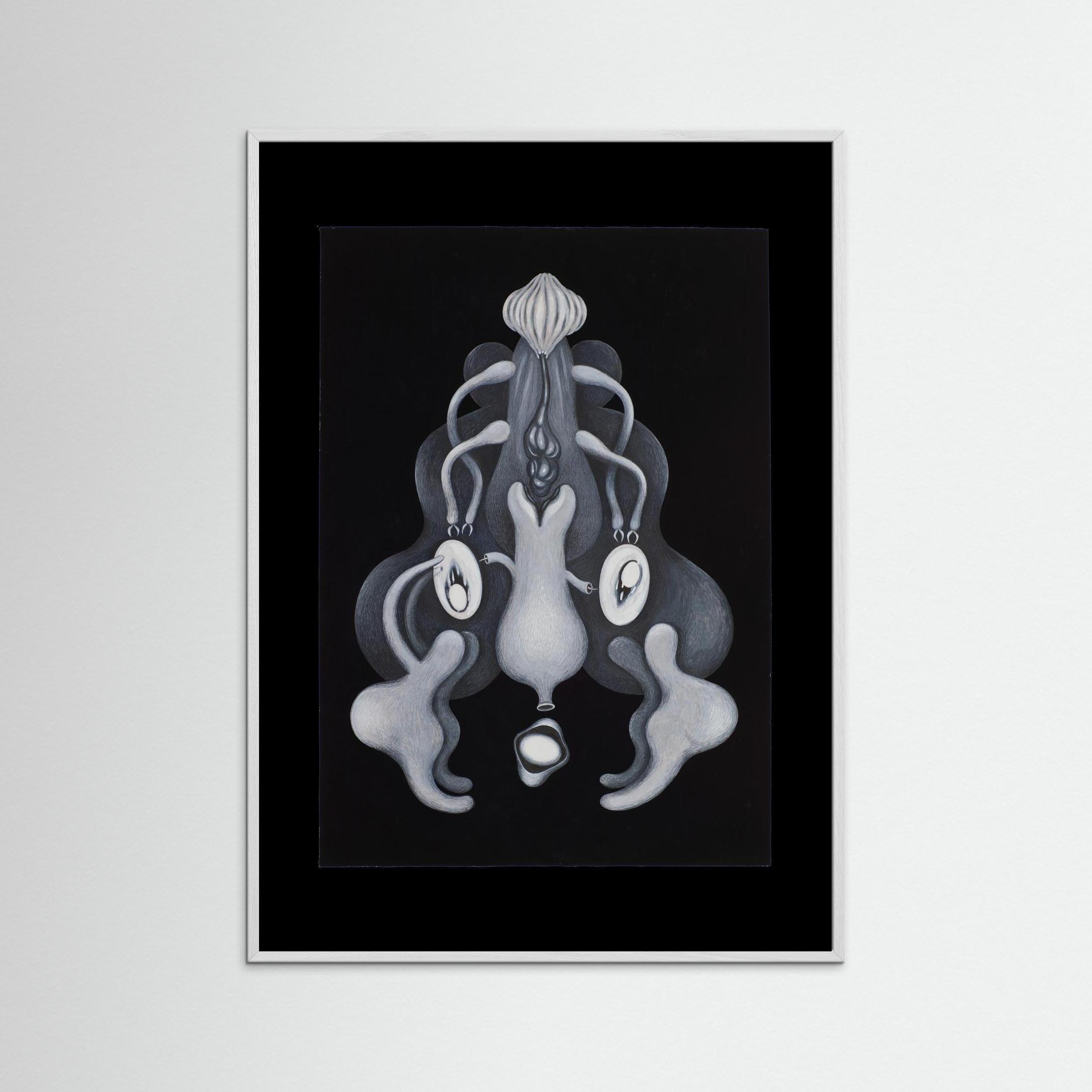 A reversible fine art print from Fanny Senocq’s UpsideDown collection. Middle Manager & Trophy in Wasteland is a sharp and satirical take on workplace hierarchies, institutional decay and the absurdity of power. Two biting visual narratives share a single gouache composition – rotate to reveal a completely different story.