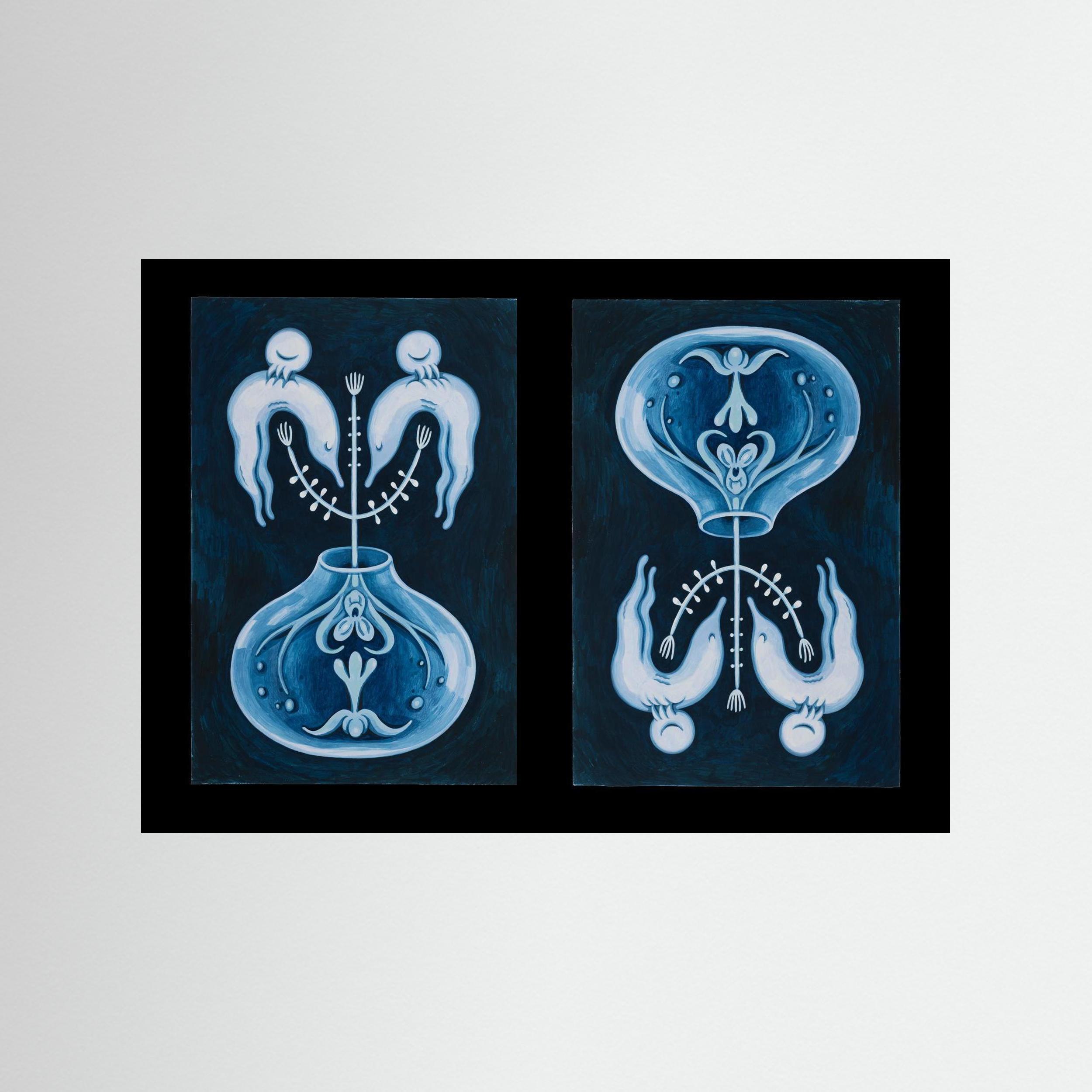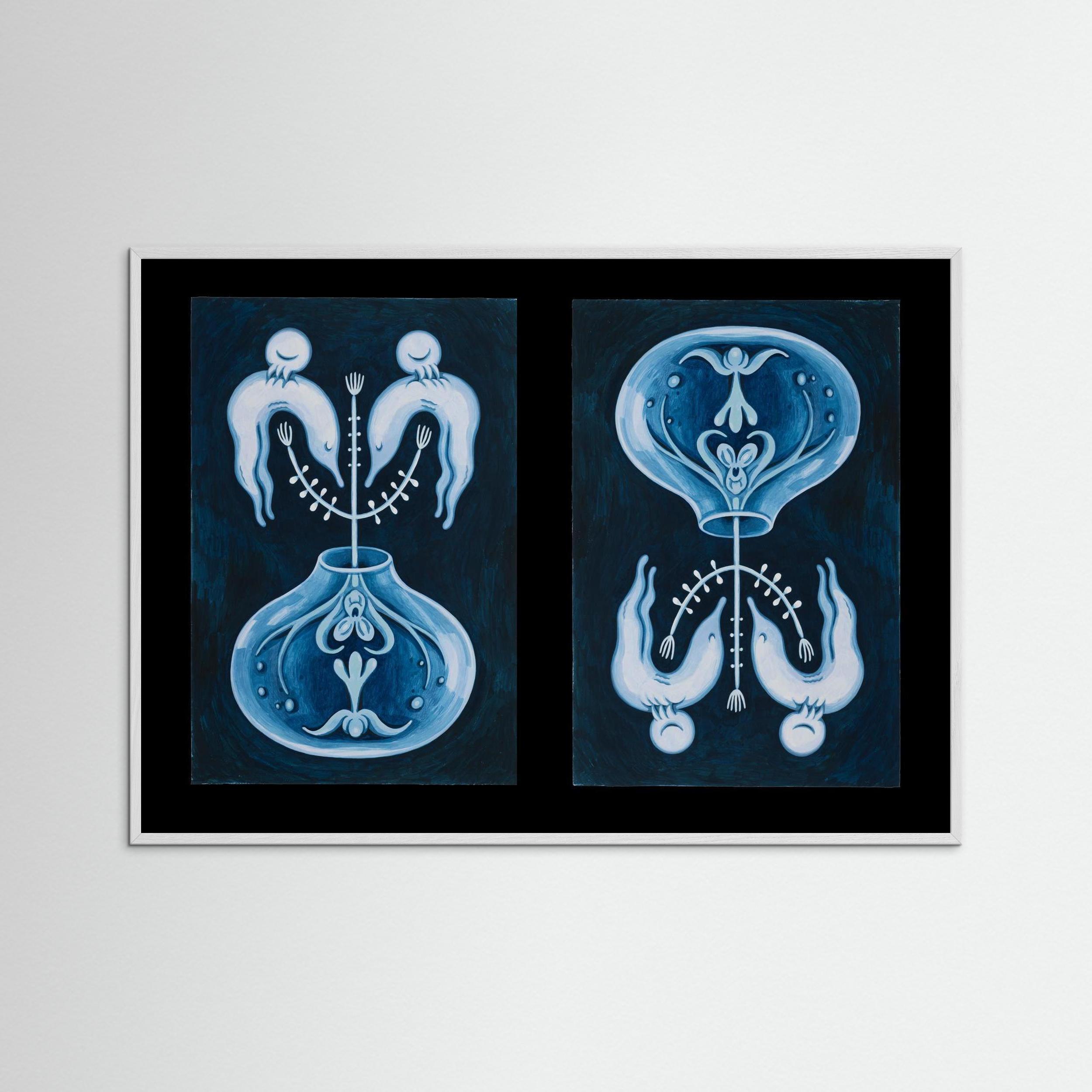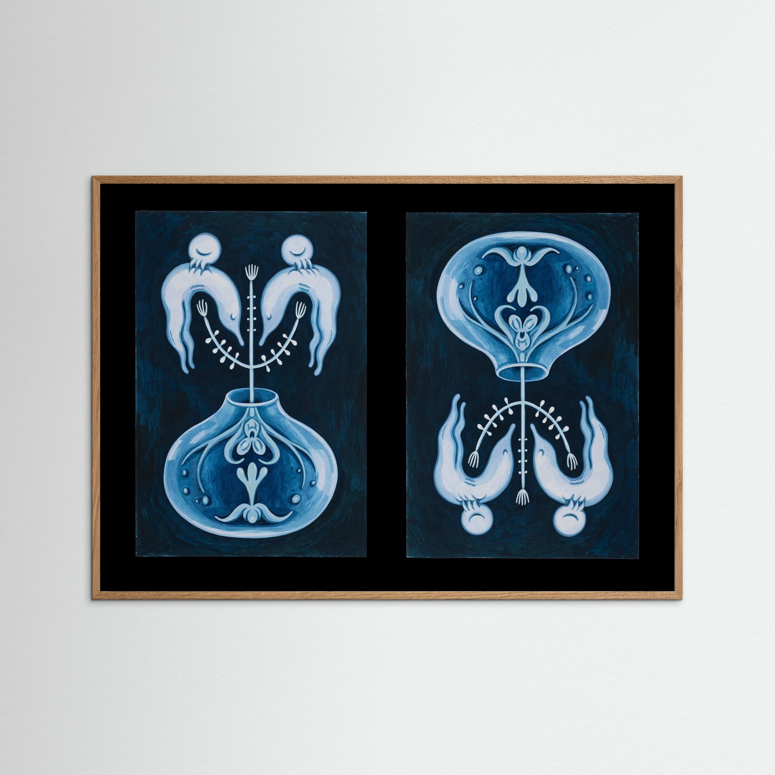 A reversible fine art print from Fanny Senocq’s UpsideDown collection. Rhizome & Deep Sea draws on natural metaphors of underground networks and abyssal depths to explore connection, resilience and hidden life. A visually lush dual-orientation gouache artwork where both orientations reveal their own complete world.