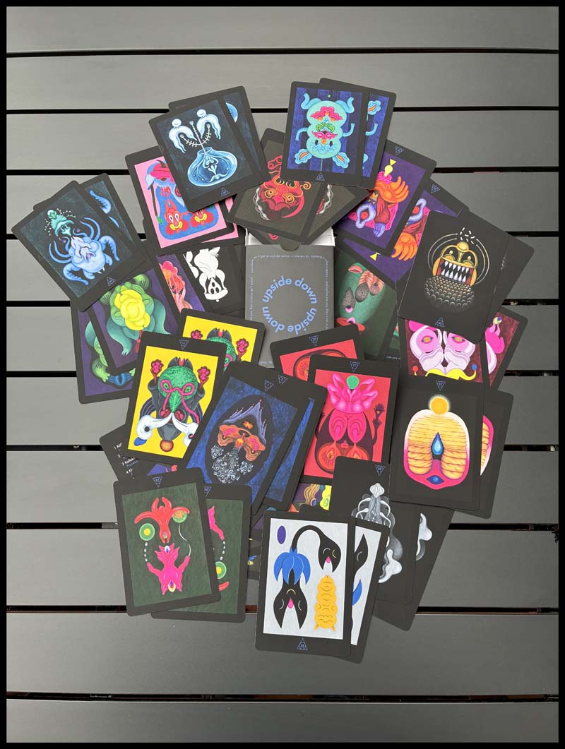 Upptäck dualitetens magi genom vårt Upside Down-kortspel, 2 set med 22 kort där varje bild avslöjar två helt olika världar – beroende på hur du håller det. Varje kort kommer med konstnärens personliga reflektion, vilket ger dig en inblick i det kreativa sinnet bakom varje vändning.